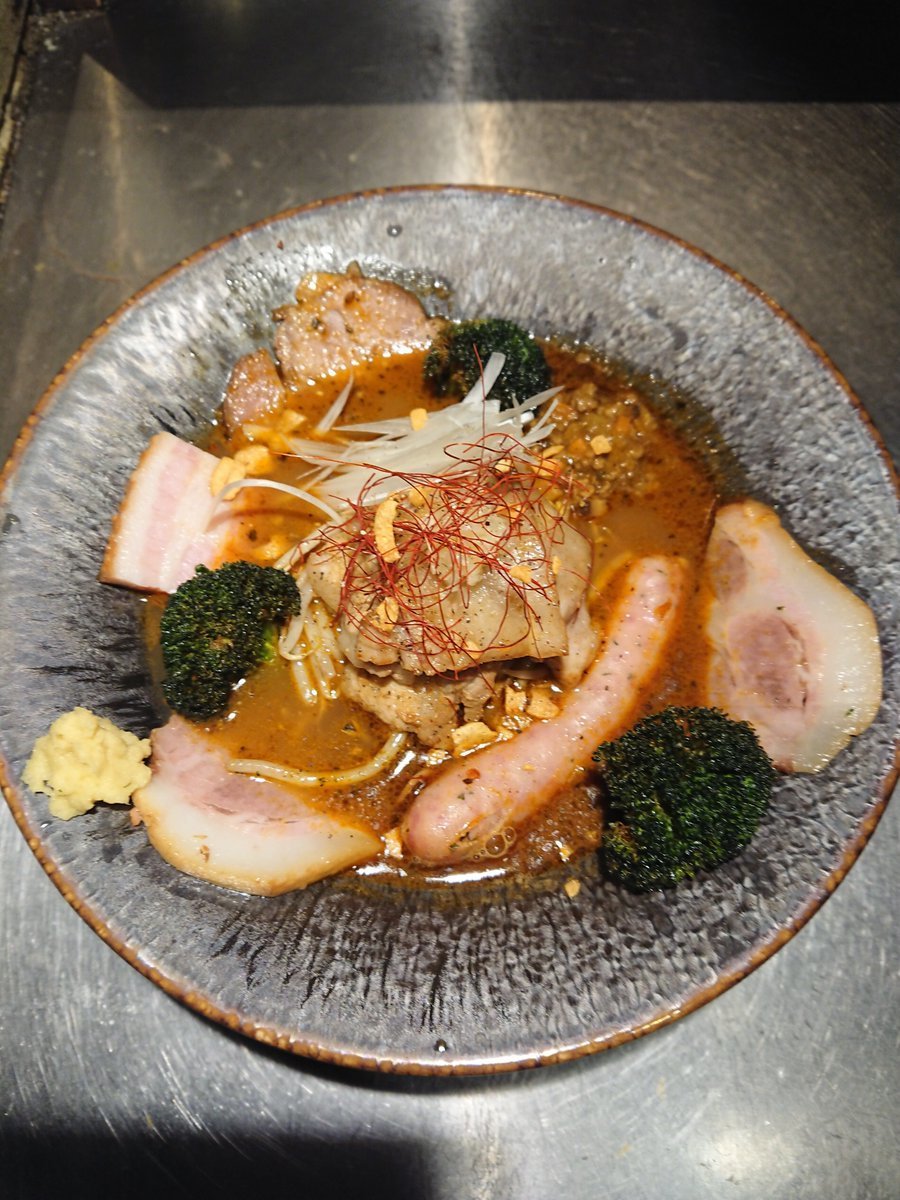 本日も食レポにご参加頂きまして有難う御座います♪豚肉だらけのスープカレーラーメンに羊のペコリーノチーズを投入すると味の変化が楽しめて面白いとゆうご意見も頂きました。ニンニクたっぷりの濃厚ラーメンに更にペコリーノチーズの深み、是非、一度お試し下さい(#^.^#)