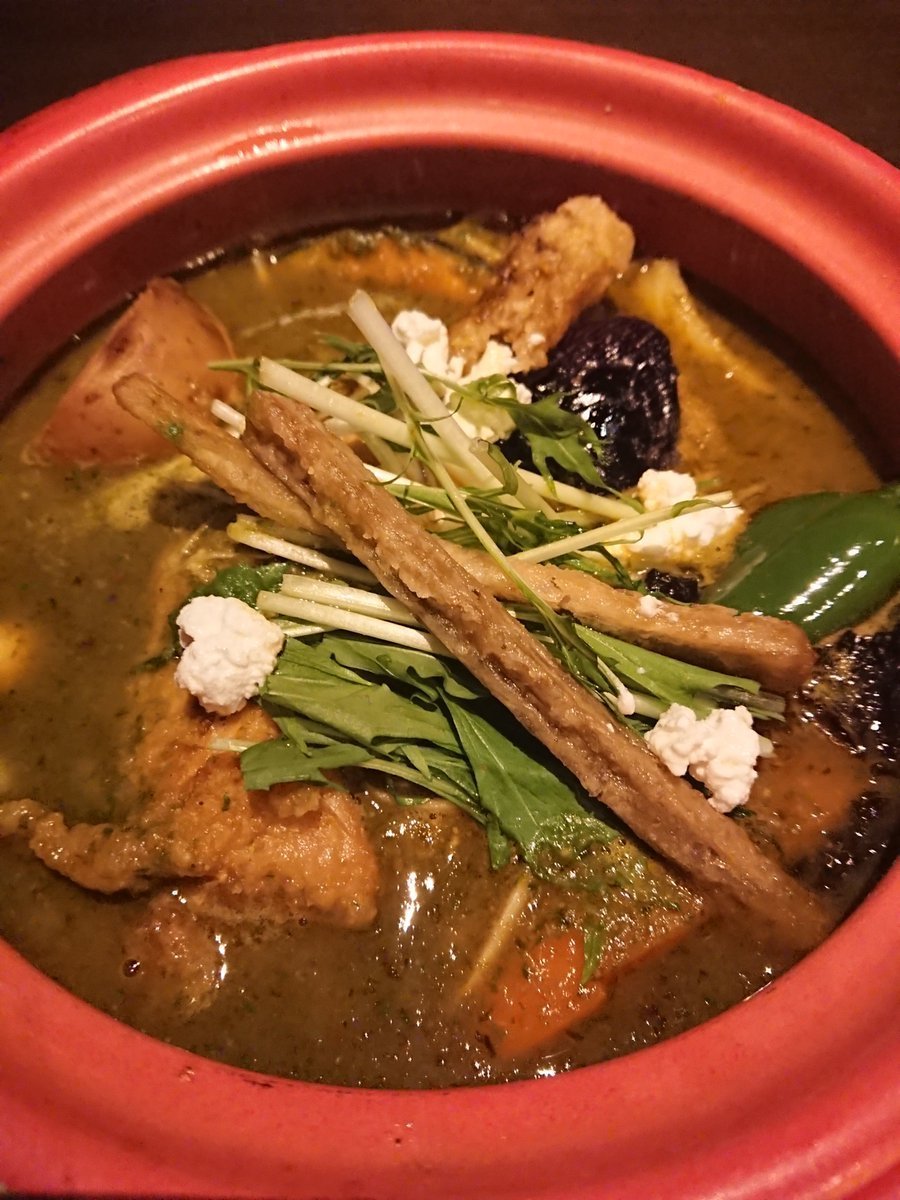 今日の試作♪パラックパニール風スープカレーです✨ほうれん草の代わりにこれから旬の行者にんにくを使いました😆食物繊維豊富で栄養価もかなり高いです❗不思議なことにたっぷり入れても全然臭くありません💦ヤバい、これはハマります😆ただ、見た目がよろしくないですね😱来週も何か企画致します☆彡