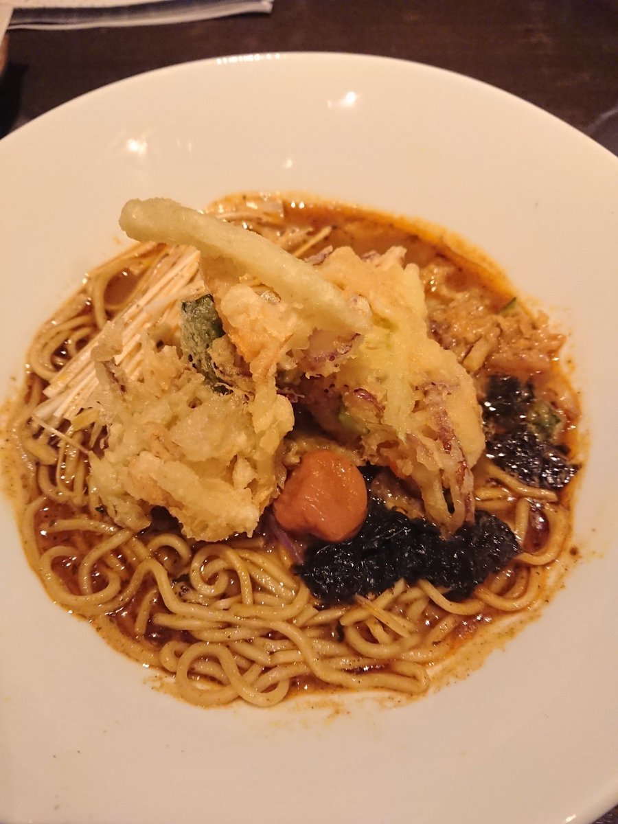 かき揚げスパイスラーメン🍜早速、試食♪う~ん、やっぱり普通に美味しい(^_^;)あっさり煮干スープがコッテリになります💦サクサクしたかき揚げが、途中で溶けだして麺に絡みつく✨スープに浸してご飯が食べたくなります(*´ω`*)今なら600円でお召し上がり頂けます🦐詳しくは、ツイートをご覧下さい☆