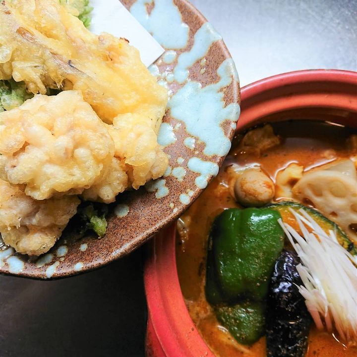 今週も止まりません💦SNS限定メニューとして、旬の真だちの天ぷらスープカレー¥1400を本日よりディナー限定(13時~14時半OK!)で1月23日までご提供致します✨煮干スープ限定で、春菊と舞茸の天ぷらも添えられております🎵クリーミーなタチのエキスが溶け出したスープ、是非、ご賞味下さい💕 ライス(200g)がついてます。タチが高価な為、タチ天ぷらの追加は、ご遠慮頂きます💦相変わらず大変な日が続いておりますが、少しでも季節感を味わって頂けると嬉しいです⛄安全・安心を第一に営業しております🎵無理なく、お越し頂ければ幸いです💕お身体には十分に気をつけて、お待ちしてます✨#しゃば蔵 #札幌スープカレー #スープカレー #スープカレー札幌 #スパイスカレー #スパイスラーメン#たち天
