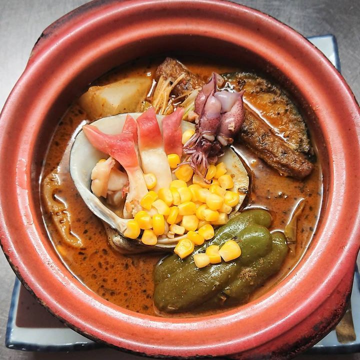 昨日の試作🎵北寄のコーンバター・スープカレーです🌽試しにホタルイカをのせてみましたが、煮干スープとゴロの苦みが相性が良くないです💦北寄も1玉だと旨味がそこまで出ないなぁ~(>_<)う~ん、困ったなぁ。。。発想を変えて他のスープでも試してみます💪期待に答えられるように頑張ります💪 #スープカレー #スープカレー札幌 #しゃば蔵 #スープカレーしゃば蔵 #札幌スープカレー #スパイスカレー札幌 #スパイスラーメン札幌