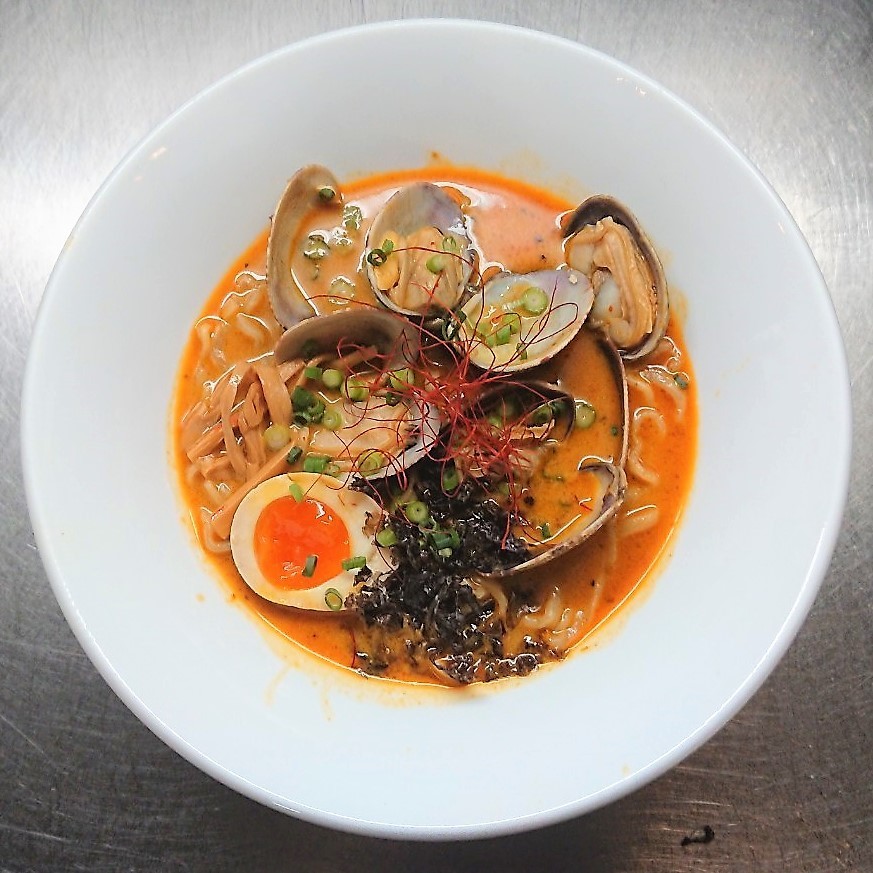 お待たせ致しました🍜今週からの限定メニューは、これから旬の厚岸産アサリのレッドカレーラーメン¥1200(期限4月9日まで!)です✨浅利が爆上がりしていて、残念ながら当分は値下がりする気配はなさそうです(>_<)旨味を出す為に6個お付け致しますが、今回はあさり増しはご遠慮頂きます💦続く。。。