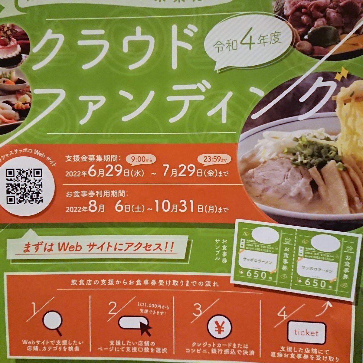 札幌市のクラウドファンディングに参加させて頂きます🎵既にご支援を頂戴しているようで誠に有難うございます🎉プレミアム付きお食事券がお得に購入できます✨募集期間7月29日までと短いですが、ご利用は8月6日~10月31日までです🍲皆様の温かいご支援お待ちしております。 https://t.co/aUELaVfJM8
