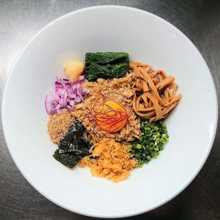 12月1日~13日までの限定は!久々のグリーンカレーまぜそば(茹で前150g)¥1000です🍜脂は控えめ、野菜はたっぷりと健康的なまぜそばを目指しました🎵お好みで自家製のラー油と黒酢でカスタマイズしながらお楽しみ下さい✨辛いのが苦手なお客様にはココナッツミルクを無料でご用意しております🥥